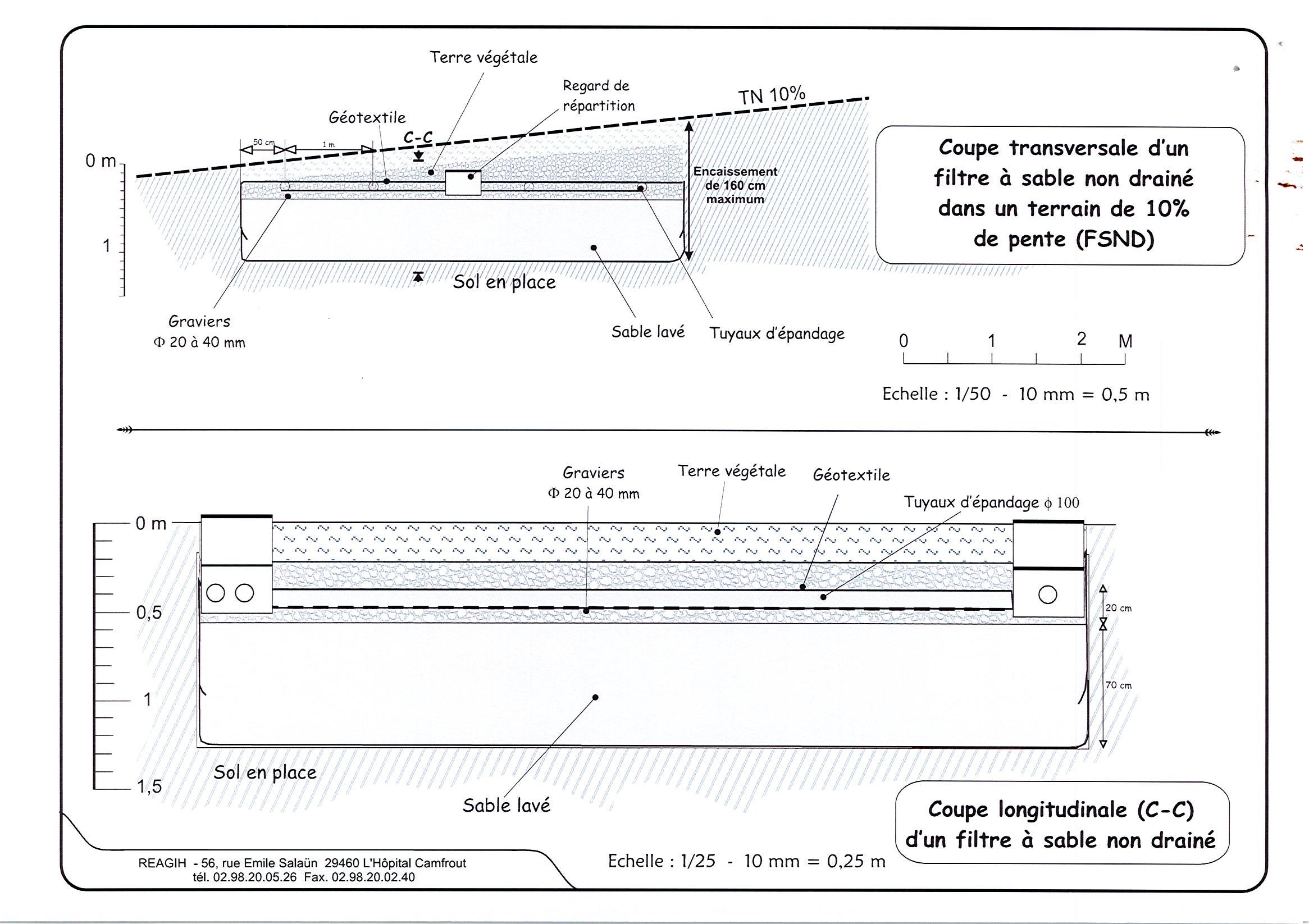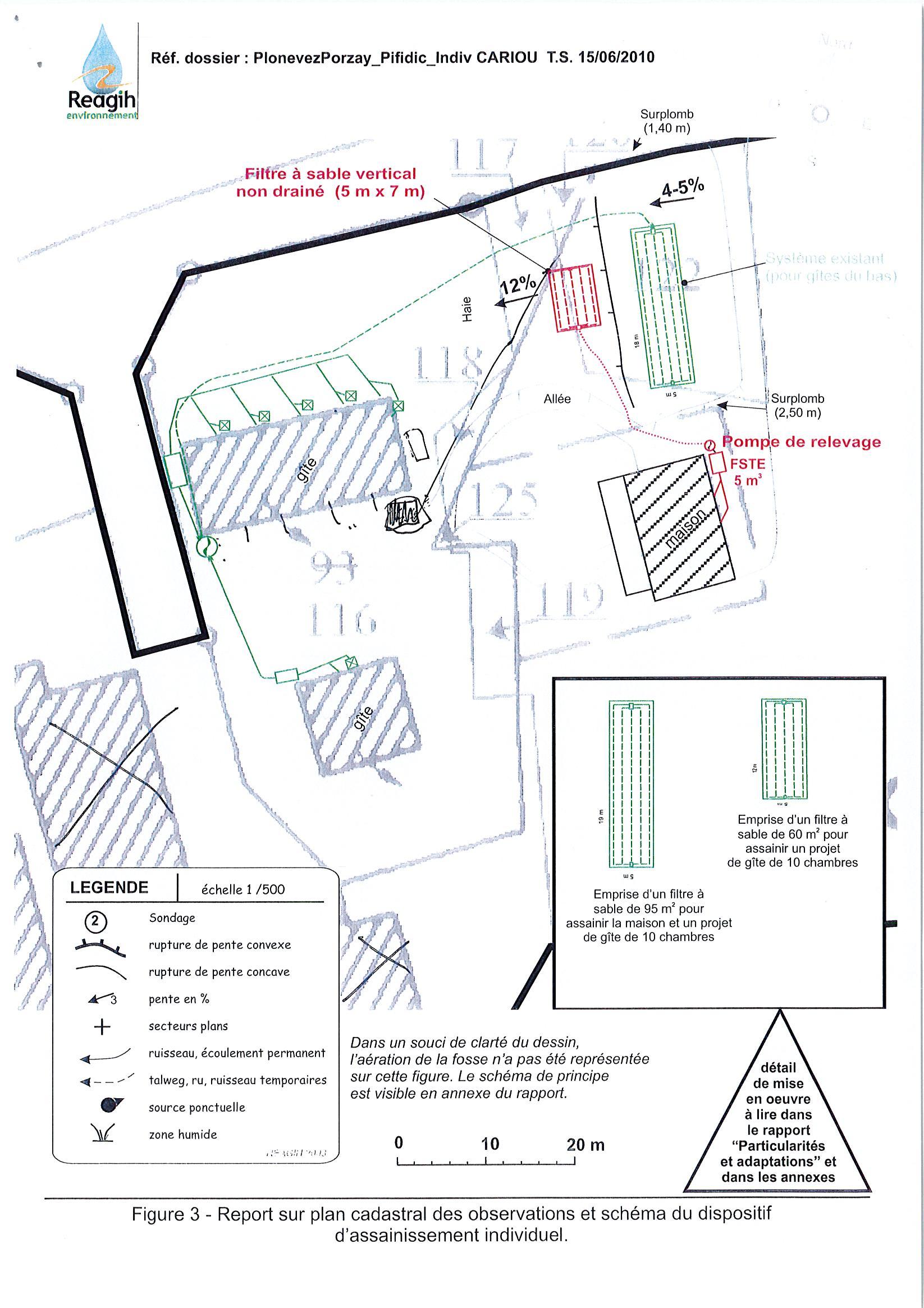 - réaliser un filtre à sable de 35m² vers l'étendoir à linge un peu au dessous du champs d’épandage existant: